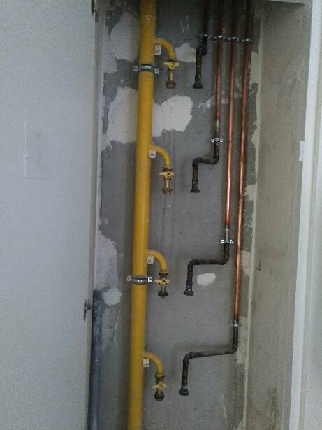 Nous avons réalisé 5 colonnes montantes en acier et posé à chaque pied de colonne une vanne de coupure de gaz. Chaque colonne a été équipée de clarinettes c’est-à-dire des dérivations (65 au total), afin de poser plusieurs piquages sur les 8 niveaux des 5 cages d’escaliers.